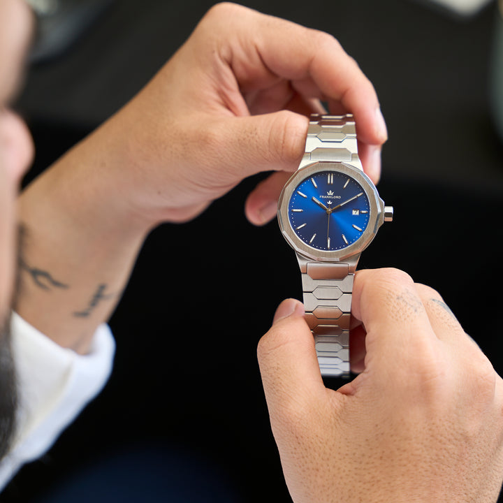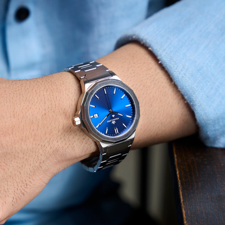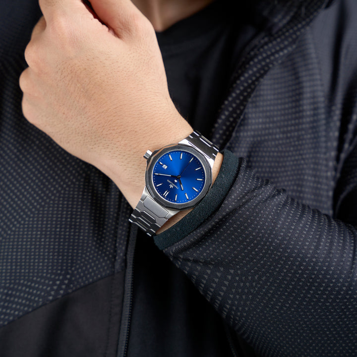 The Ocean Blue dial is a statement. It represents the depth of opportunity—the 'blue ocean' of untapped potential that defines India today. It is the color of clarity in thought and stability in purpose, a calm horizon for those charting a bold new course.