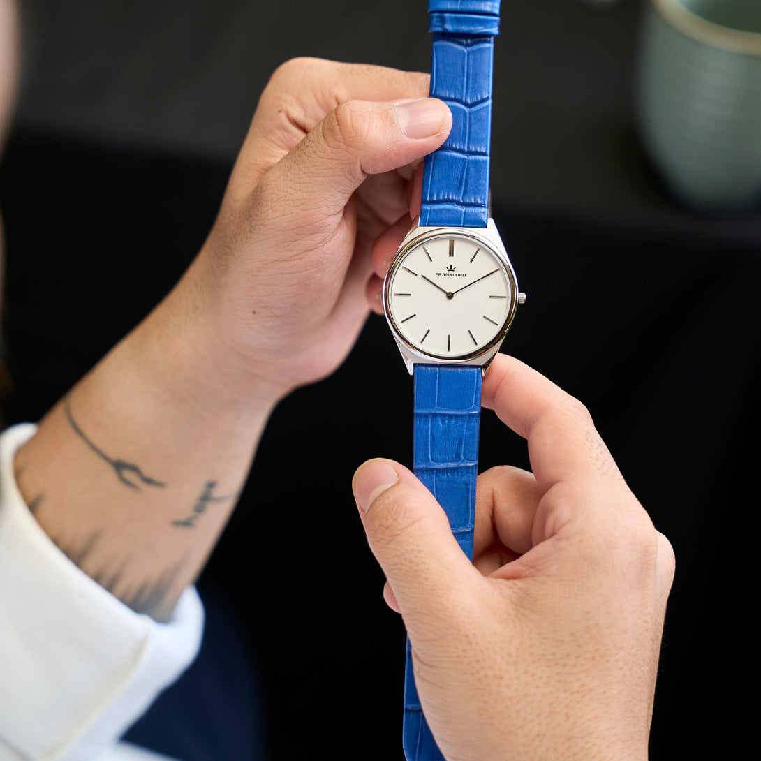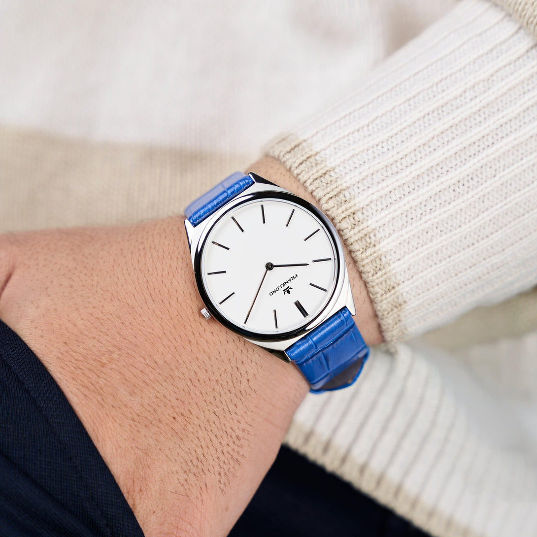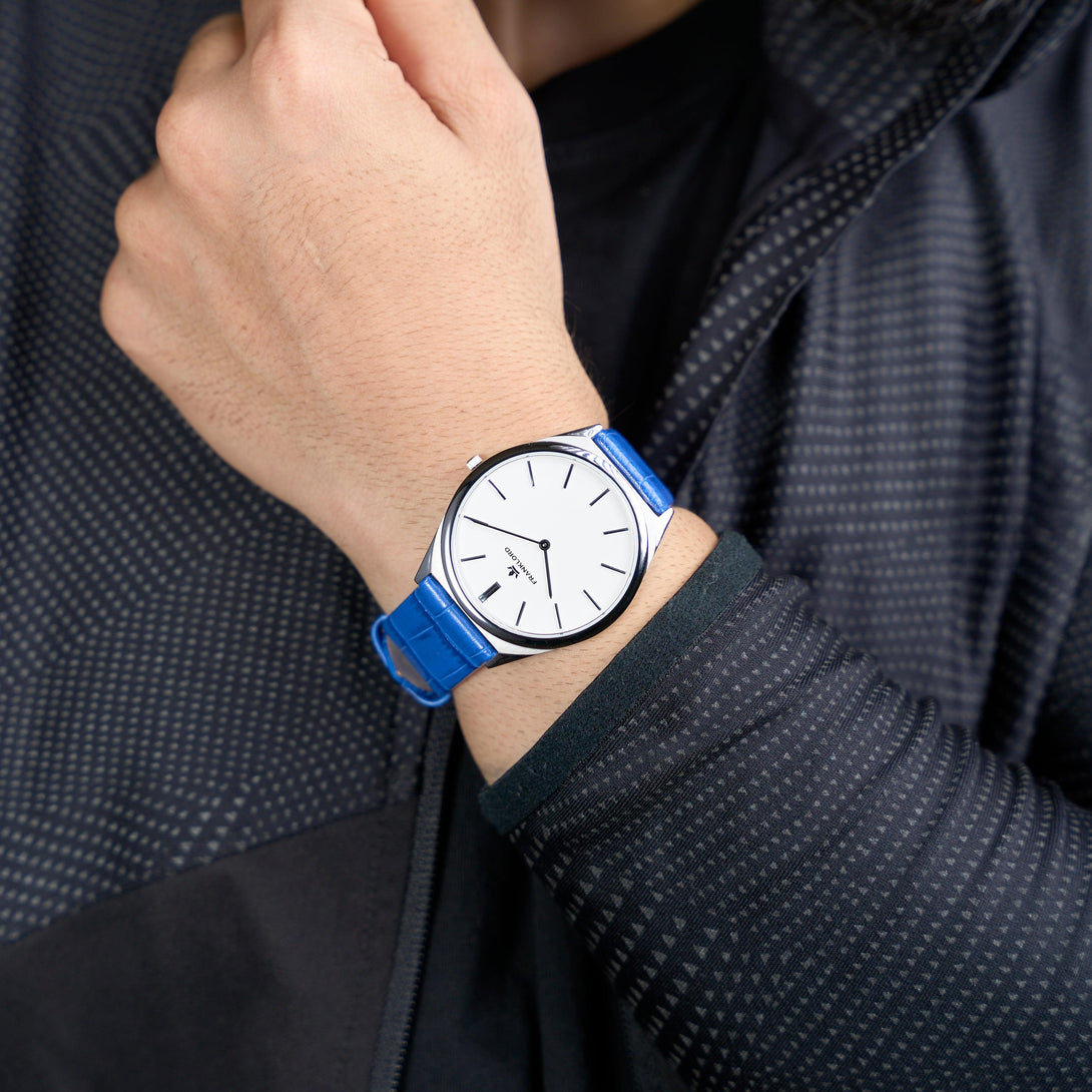 The clean, sunray white dial is your canvas, a space of pure clarity where your greatest ideas take shape. Paired with a vibrant blue strap, this timepiece is a statement of confident execution—representing the bold action that turns a brilliant plan into a reality.